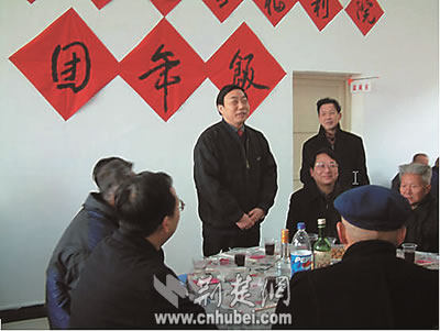 省民政廳領(lǐng)導與福利院老人一起吃團年飯