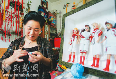 憨態(tài)可掬的企鵝令人喜愛,亭亭玉立的美少女身著靚衣,精美的壁掛配有插花……這些精美的工藝品,都是用毛線編織出來的。昨日,記者走進(jìn)印迎春的家,被滿室琳瑯滿目的編織品看花了眼。