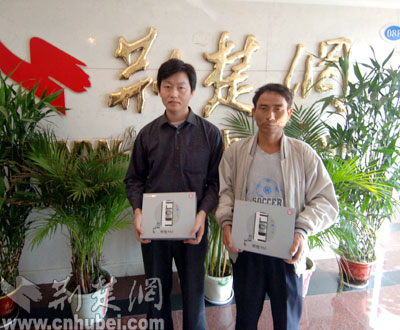 武漢的李先生是江西人,在武漢打工多年,他是替自己的兒子來領(lǐng)獎的。李先生告訴我們,自己全家都愛看楚天都市報,昨晚得知兒子中獎后,全家都非常高興。兒子一直很喜歡參加一些類似的短信答題活動,但是從未中過獎,昨天參與都市報的“讀報紙、發(fā)短信、中手機”活動時,開始還有點猶豫是否該發(fā),最后還是用小靈通發(fā)了一條短信,“就這一條就中了!”李先生抑制不住滿心喜悅告訴我們。