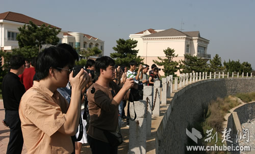 荊楚網(wǎng)大連訊 (記者劉暢)南腔北調(diào),長(zhǎng)槍短炮,今日上午,來(lái)自全國(guó)的30多家主流網(wǎng)絡(luò)的記者齊聚濱城大連,揭開(kāi)了2005網(wǎng)絡(luò)媒體大連行的序幕。