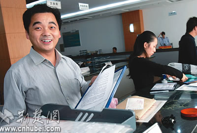 7日,武漢雷泰電力材料有限公司的張紅軍(上圖),僅用20分鐘就在武漢市洪山區(qū)政務(wù)服務(wù)中心辦理完公司的稅務(wù)登記證。他滿(mǎn)臉笑容地說(shuō):“現(xiàn)在辦事方便了,態(tài)度也好了!倍荒昵埃k理同樣一份登記證至少要跑4個(gè)部門(mén),有時(shí)花一星期時(shí)間也不一定能辦妥。