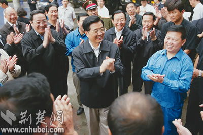 胡錦濤總書記在襄樊慰問企業(yè)職工。