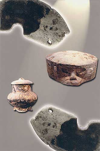 魚(yú)鳥(niǎo)形玉璜:裝飾品(上、下,長(zhǎng)6.6厘米)[相關(guān)鏈接]:20世紀(jì)中國(guó)百項(xiàng)考古大發(fā)現(xiàn)(1-20)21、大溪遺址(圖)22、城頭山遺址(圖)23、屈家?guī)X遺址(圖)24、崧澤遺址(圖)25、馬家窯遺址(圖)26、柳灣墓地(圖)27、牛河梁遺址(圖)28、城子崖遺址(圖)29、良渚文化遺址群(圖)30、石家河遺址群(圖)31、陶寺遺址(圖) 32、王城崗遺址(圖)33、齊家坪遺址(圖)34、卡若遺址(圖)35、石峽遺址(圖) 36、東灣仔北遺址(圖)37、圓山遺址(圖)38、二里頭遺址(圖)39、東下馮遺址(圖)40、夏家店遺址(圖)