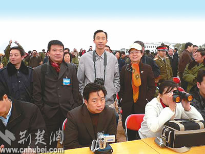 ●北京時(shí)間9時(shí)06分,神舟六號(hào)飛離酒泉衛(wèi)星發(fā)射中心觀禮臺(tái)人員視野。湖北日?qǐng)?bào)記者張小燕連線發(fā)射現(xiàn)場(chǎng)———嘉魚縣委宣傳部部長(zhǎng)葛婷