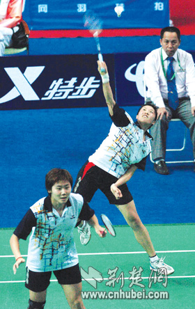 在江蘇昆山舉行的羽毛球女雙決賽中,湖北省的高崚/魏軼力面對(duì)雅典奧運(yùn)會(huì)冠軍組合———廣東的楊維/張潔雯,毫不手軟,以15:10、17:15直落兩局,爆了一個(gè)小小的冷門(mén),為湖北羽毛球隊(duì)奪得唯一一枚金牌。