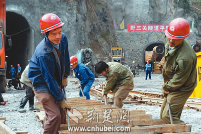 這條鐵路橋梁和隧道多,全路的橋隧累計(jì)長(zhǎng)度占全線總長(zhǎng)的73.69%,其中隧道多達(dá)121座,占全線長(zhǎng)度的59.54%。隧道多,隧道長(zhǎng),隧道之中還要建橋梁,這在我國(guó)的鐵路建設(shè)史上也是罕見(jiàn)的。其中還有一些車站也建在隧道里,隧道施工成為工程建設(shè)最重要的環(huán)節(jié)。