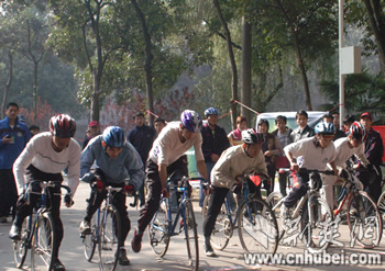 荊楚網(wǎng)消息(記者吳彬彬)2005湖北省第一屆大學(xué)生自行車聯(lián)賽今天上午在華中科技大學(xué)拉開帷幕,共有來自華中科技大學(xué)、中國地質(zhì)大學(xué)(武漢)、武漢大學(xué)、武漢理工大學(xué)、華中農(nóng)業(yè)大學(xué)、湖北工業(yè)大學(xué)和湖北經(jīng)濟(jì)學(xué)院的23支隊伍前來參賽。