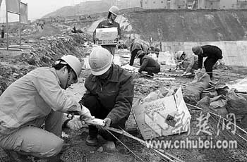 為確保爆破萬無一失,大年初四,公司總工程師李宏兵就從重慶趕到工地督戰(zhàn)!氨齐y度并不小,我們不敢有絲毫的馬虎!崩詈瓯f,防滲墻高24米,墻體不均質、不等厚,爆破時既要將防滲墻混凝土炸碎,又要將預埋灌漿鋼管炸斷,爆破難度可想而知。
