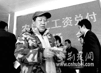 2日,湖南籍在鐘祥市境內(nèi)某高速公路務(wù)工的農(nóng)民工在鐘祥市勞動(dòng)監(jiān)察大隊(duì)領(lǐng)到了他們的工資。近年來(lái),鐘祥市勞動(dòng)和社會(huì)保障局著重建立和完善農(nóng)民工權(quán)益保障制度,經(jīng)常在全市開(kāi)展勞動(dòng)用工專(zhuān)項(xiàng)檢查,加大對(duì)農(nóng)民工工資支付監(jiān)控力度,從源頭上有效地控制了拖欠農(nóng)民工工資問(wèn)題。(通訊員趙云福鐘國(guó)慶攝)