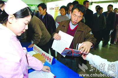 記者在醫(yī)院體檢登記冊(cè)上發(fā)現(xiàn),除湖北省各地區(qū)來漢的務(wù)工人員外,還有不少農(nóng)民工來自四川、安徽、江西、河南等地。據(jù)院方介紹,除不屬于此次服務(wù)范圍的武漢市7個(gè)中心城區(qū)市民外,其他前來體檢的外來務(wù)工人員都享受了免費(fèi)服務(wù)。