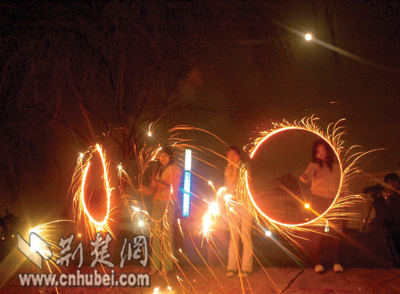 中山公園里,一對(duì)對(duì)情侶紛紛登上湖中的小舟,在燭光中許下愛(ài)情的誓言。25歲游客小敏舉著燈籠,偎依在男友的懷里,羞澀地笑著告訴記者:“今天我同意嫁給他了,這是我們金豬年最大的喜慶。”