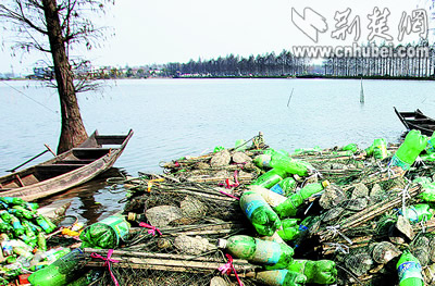 昨日,記者在湖邊看見了一大堆塑料瓶和珠蚌(如圖)。據(jù)投資人周某稱,這些都是這兩天撈上岸的。