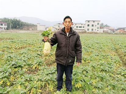 當(dāng)天下午,筆者來到大幕鄉(xiāng)石橋村。當(dāng)?shù)卮迕衽藥煾嫡f,他受雇于湖北淦水農(nóng)業(yè)發(fā)展有限公司,負(fù)責(zé)種植和照看這些蘿卜,播種、施肥的時候,村里有20多個貧困戶會到這里打工。公司請的人都是和他一樣的老人,家庭都比較貧困,有這些脫貧項(xiàng)目,村里的人覺得生活有奔頭。