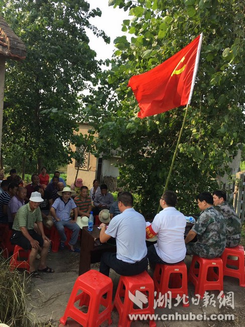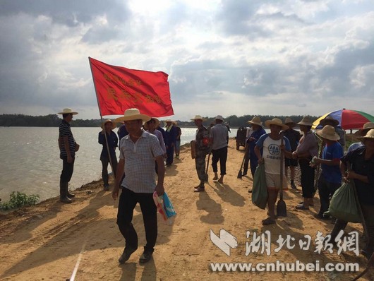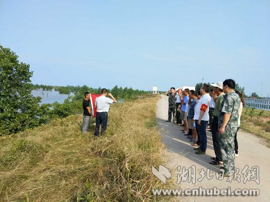 湖北日報網(wǎng)訊(全媒體記者張愛虎、通訊員敖瓊、龍鈺)“我志愿加入中國共產(chǎn)黨……”3日下午,嘉魚縣簰洲灣鎮(zhèn)簰洲灣大堤上,40多名黨員頭頂烈日,面對長江,面向黨旗,重溫入黨誓詞,學(xué)習(xí)省黨代會精神,鞏固防汛知識,落實(shí)防汛工作。