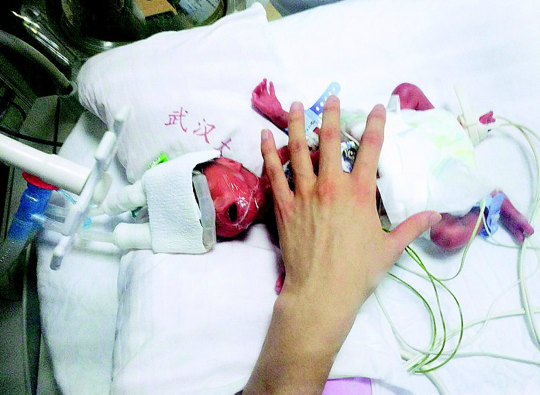 當(dāng)晚,圓圓降生。可她只有成人巴掌大小,體重810克,身長32厘米,屬于“超低出生體重兒”“超早產(chǎn)兒”。她的皮膚呈青灰色,沒有呼吸和反應(yīng),只有不規(guī)則的、微弱的心跳。