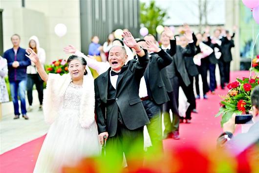 “我們那時(shí)候沒有辦婚禮?!?5歲老人丁恕說,兩人攜手超過半個(gè)世紀(jì)了。當(dāng)初結(jié)婚時(shí)沒有婚紗,更沒有辦一個(gè)像樣的婚禮,只是把新娘接回家吃了頓飯,婚禮就算完成了,現(xiàn)在有這樣的機(jī)會(huì),也算是給老伴一個(gè)補(bǔ)償。