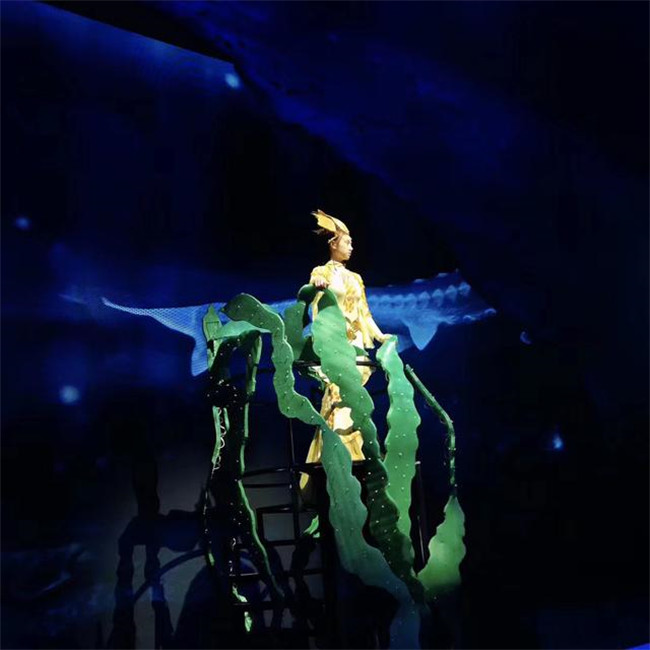 《浮出水面》講述了未來人類因一次地震而沉入海底生活,小男孩“歡歡”一家在未來世界認識到環(huán)境污染的嚴重,在中華鱘“奔奔”的指引下浮出水面,最后重回陸地建設家園的故事,劇情將大量音樂舞蹈與科學知識結合,涵蓋垃圾分類、人體急救、阿基米德原理、火箭噴射等多種科學知識。整場演出亮點紛呈。