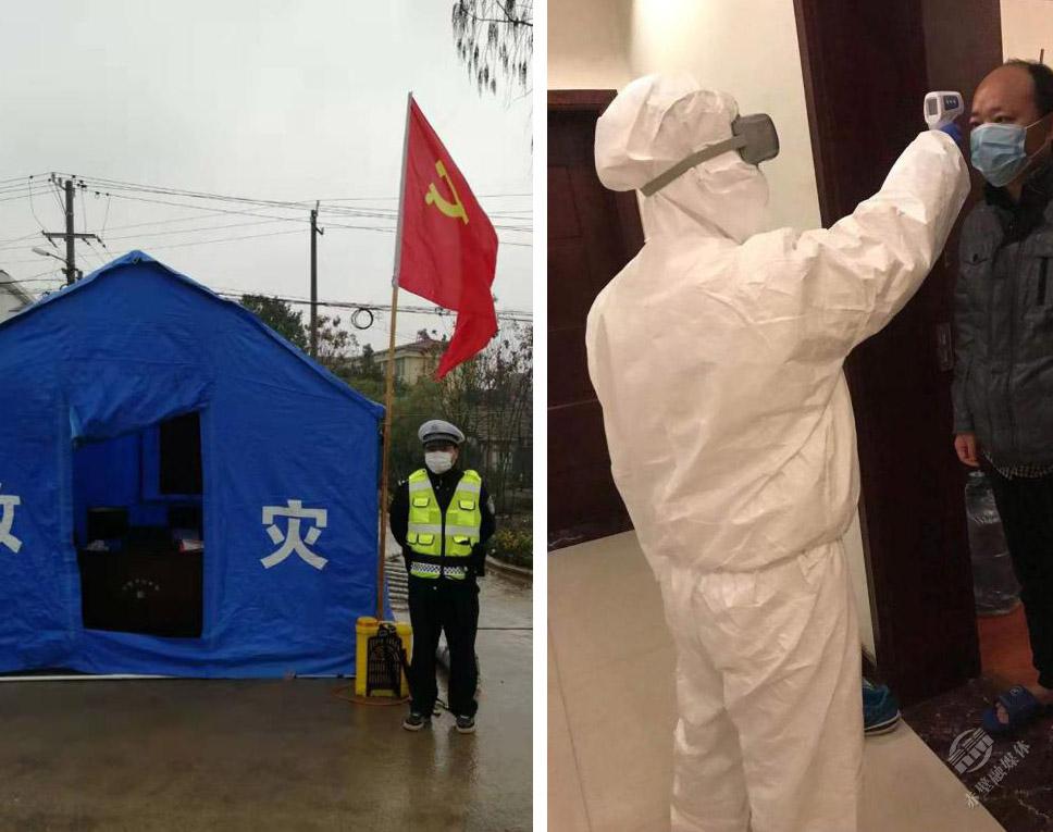 陳又喜說,“我是參加過03年非典防控的老民警,這個(gè)時(shí)候我不上誰(shuí)上?”一接通知,他與妻子陳少麗迅速?gòu)耐ㄉ嚼霞亿s回赤壁,立馬投身各自值守工作。