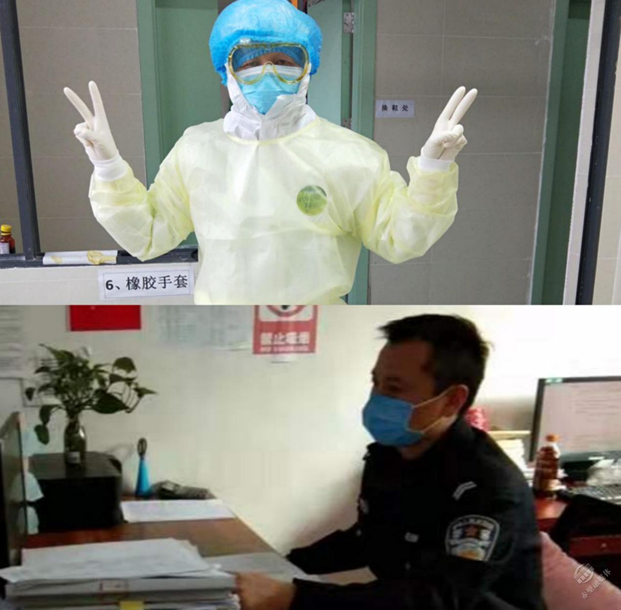 除夕至今,楊光吃住在單位,跑遍轄區(qū)角角落落,三個(gè)卡點(diǎn)的排班表和巡邏值班表上寫滿了他的名字。王姣抽調(diào)到隔離四區(qū),給病患打針治療、記錄生命體征、照料起居生活。
