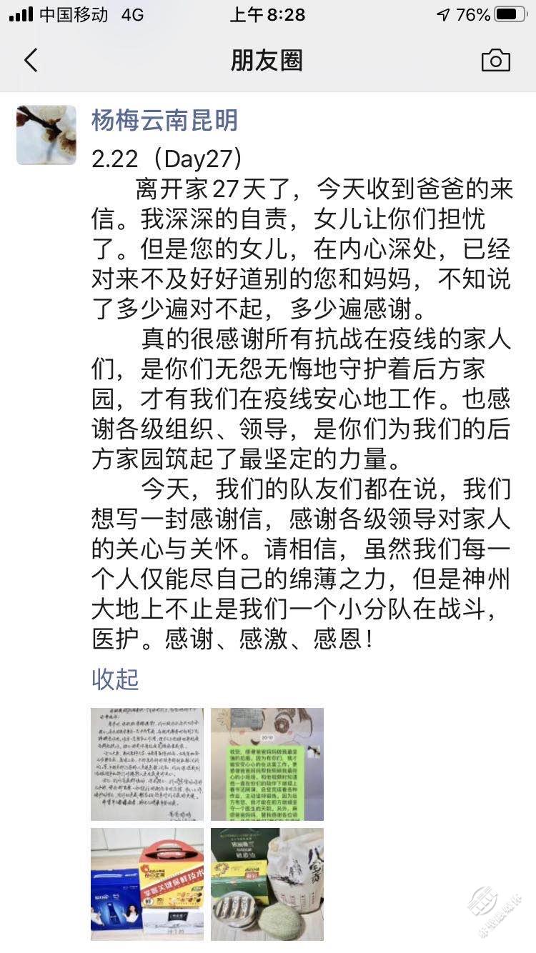 今天,我們的隊(duì)友們都在說,我們想寫一封感謝信,感謝各級領(lǐng)導(dǎo)對家人的關(guān)心與關(guān)懷。請相信,雖然我們每一個(gè)人僅能盡自己的綿薄之力,但是神州大地上不止是我們一個(gè)醫(yī)護(hù)小分隊(duì)在戰(zhàn)斗。感謝、感激、感恩!