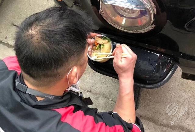 或站著或蹲著吃飯的戰(zhàn)“役”者隨處可見(jiàn)