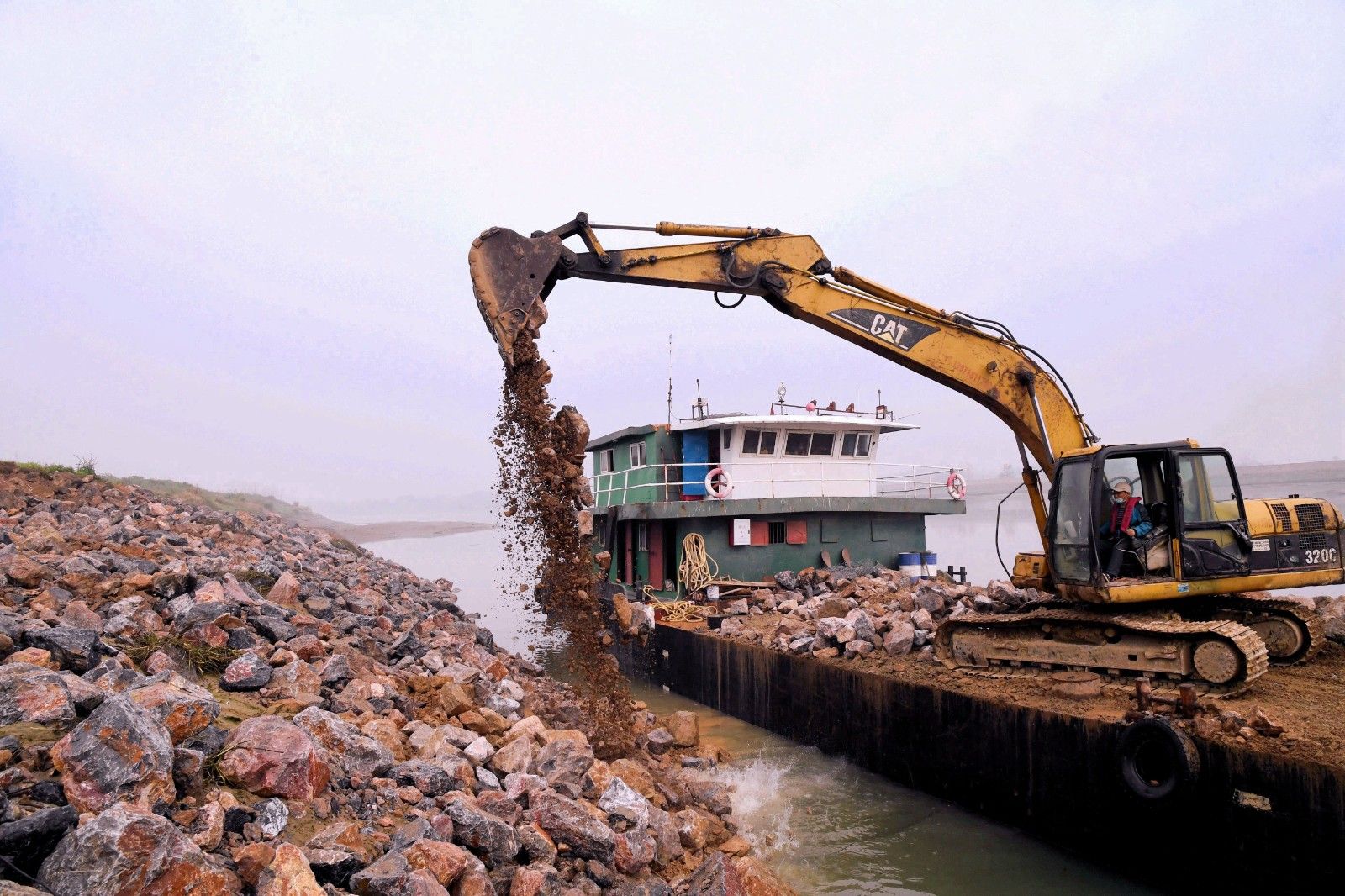 陸水河四清垸大堤全長450米,多年來的洪水侵襲致使河床下沉,堤岸崩裂。對此,赤壁市制訂了堤岸拋石護(hù)腳整治規(guī)劃。隨著疫情逐漸好轉(zhuǎn),赤壁市于3月18日啟動工程維修計(jì)劃,投入大量人力物力。隨著挖掘機(jī)鐵臂的揮舞,一塊塊巨石墜落在河岸,為大堤的防洪能力再加一道保險(xiǎn)。