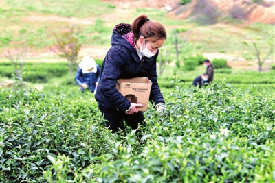 據了解,該基地由在外創(chuàng)業(yè)回鄉(xiāng)人員于2015年興建,占地500余畝,目前已逐步成園?;刈?月6日復工以來,日平吸納當地勞動力50余人次采茶。