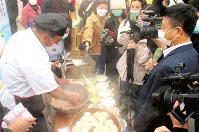4月3日,在嘉魚特產贈送云南醫(yī)療隊暨嘉魚農產品原產地直播活動現場,嘉安集團工人制作簰洲圓子的過程受到熱烈追捧。簰洲圓子現已成為展示嘉魚魚文化的一張文化名片,成為傳承文化遺產、發(fā)展文化產業(yè)、建設美麗鄉(xiāng)村的一個文化品牌。此外,簰洲圓子還登上了央視紀錄片《舌尖上的中國》,憑著其傳統(tǒng)的技藝及綠色健康的特點,享譽神州大地。
