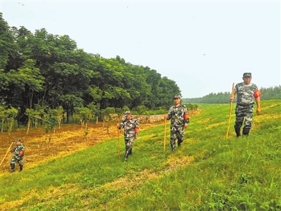 “這個(gè)插上紅旗做標(biāo)志的地方是地質(zhì)鉆口,雖已封口,但每次巡堤一定要來(lái)檢查,看周圍是否有異?!边@是朱天志給新上堤的“90后”防汛突擊隊(duì)員唐文講巡堤技巧和相關(guān)要領(lǐng)。