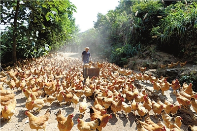 通過(guò)多方請(qǐng)教、學(xué)習(xí),他摸索出一套“雞打工,燈滅蟲(chóng),鵝除草”的種養(yǎng)結(jié)合模式,節(jié)約不少人工。