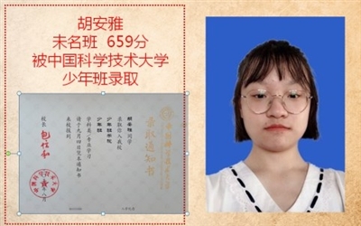8月12日,從省招辦傳來(lái)喜訊:來(lái)自全國(guó)各地的129名“天才少年”來(lái)合肥參加中國(guó)科學(xué)技術(shù)大學(xué)“少年班”復(fù)試的角逐,共計(jì)錄取48名考生。湖北僅錄4人,咸高獨(dú)占3人!余亦可、陳龍、胡安雅同學(xué)經(jīng)過(guò)嚴(yán)格挑選,脫穎而出,被中科大“少年班”錄?。菚?shū)恒同學(xué)被中科大“少創(chuàng)班”錄??!郭雷、劉瑞同學(xué)被空軍航空大學(xué)錄取!周子吉吉、饒冶、朱紫珩、趙子廉、施熠被清華大學(xué)、上海交大、復(fù)旦大學(xué)、浙江大學(xué)錄取。