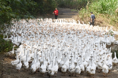 “3500多只鵝,每天光吃糧就得花1700多塊錢,5個多月來,我們已吃去了16萬多元,真的是‘被吃窮了’!”10月10日,崇陽縣沙坪鎮(zhèn)廟鋪村4組的埂場山,山谷里回蕩著群鵝嬉戲的“嘎嘎”聲,55歲的養(yǎng)鵝人劉金漢和他的妻子張金書卻滿是愁言。