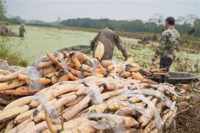 10月26日,嘉魚縣陸溪鎮(zhèn)界石村鴨兒湖養(yǎng)殖專業(yè)合作社里,負責人龔木前正和工人們一起忙著挖藕、稱重、清洗、包裝。龔木前是一名退役軍人,2009年,龔木前從部隊轉業(yè)后回鄉(xiāng)創(chuàng)業(yè),承包了村里50畝荒湖種野藕。經過幾年時間的發(fā)展,他成立了農業(yè)合作社,把藕塘面積擴大到300多畝。近些年,通過他的努力,他家的野藕通過電商遠銷全國各地,高峰期時,每天可以接到200余張訂單。 通訊員 耿海軍 杜瑞 攝