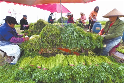 陸碼頭村土地平坦、土質(zhì)肥沃,靠近主城區(qū)。2014年開(kāi)始,村民調(diào)整農(nóng)產(chǎn)品種植結(jié)構(gòu),讓藜蒿種植成為該村的特色產(chǎn)業(yè)。目前,該村藜蒿種植面積500余畝,成為促進(jìn)村民增收的一大特色產(chǎn)業(yè)。