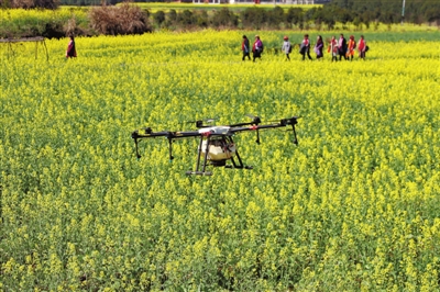 3月4日,在咸安區(qū)馬橋鎮(zhèn)建國(guó)畈油菜花海,一臺(tái)無(wú)人機(jī)盤(pán)旋在油菜花田上方,為油菜噴施環(huán)保復(fù)合肥。據(jù)咸安區(qū)農(nóng)業(yè)農(nóng)村局介紹,這是通過(guò)無(wú)人機(jī)來(lái)給油菜送“套餐”,無(wú)人機(jī)攜帶著精心調(diào)配的藥肥,能夠快速的對(duì)油菜大面積噴灑覆蓋,作業(yè)效率和效果顯著優(yōu)于人工噴施。