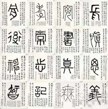在創(chuàng)作中,陳履生用接近現(xiàn)代繪畫的方式,將字的主體以篆書寫在中心位置,周圍以行書題跋書寫注釋、個人感悟等相關(guān)內(nèi)容,強化對這個字的認(rèn)識過程,讓人有更深刻的理解。如開篇第二字“義”字的題跋,除了引用古籍中對義字的解讀,還加入了一句“時在國家多事之時,義士善舉皆多”的感悟,與當(dāng)時“大疫當(dāng)前有大義”的情境十分貼合。