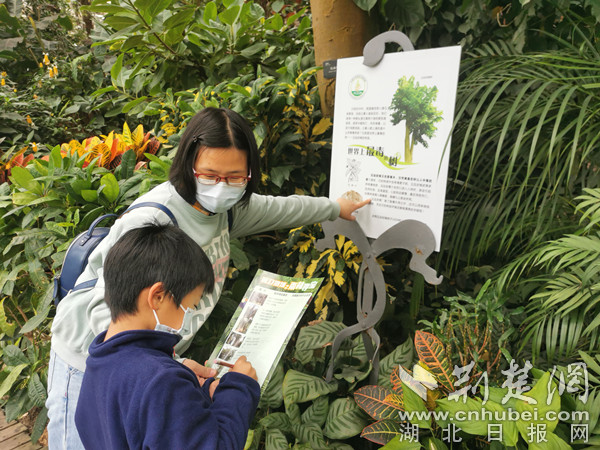 “哇,箭毒木,世界上最毒的樹就是長這樣的嗎?”在千奇百怪、生機(jī)勃勃的熱帶雨林,有很多讓人驚奇的植物。武漢植物園科普老師魏妮娜帶領(lǐng)親子家庭走進(jìn)武漢植物園景觀溫室熱帶雨林室,了解雨林奧秘:“這是龍血樹,會(huì)流出褐紅色的汁液。龍血樹是珍貴的藥用植物,是配制活血良藥‘血竭’的主要原料?!彪S后,小朋友發(fā)現(xiàn)一顆大樹的樹干和樹枝上長著鳥巢蕨、蘭花等上10種植物,就像一個(gè)“空中花園”。