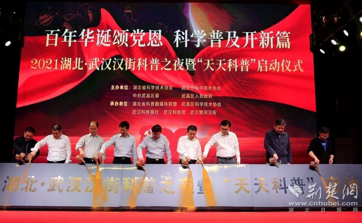 隨后,馬忠星宣布2021湖北?武漢漢街科普之夜暨“天天科普”啟動(dòng),并邀請參加活動(dòng)的嘉賓共同點(diǎn)亮鎏金沙臺。