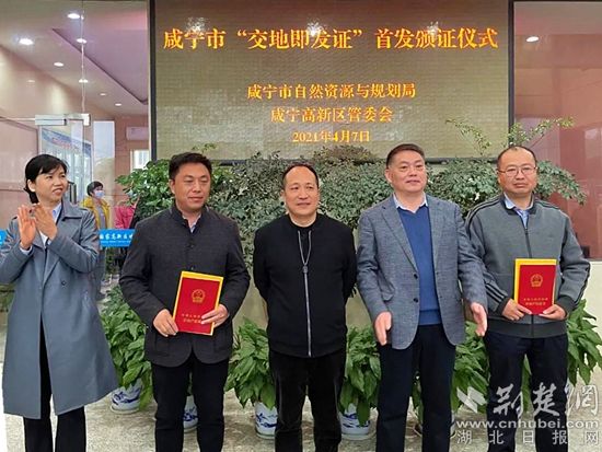 圖為咸寧市“交地即發(fā)證”首發(fā)頒證儀式。(通訊員供圖)