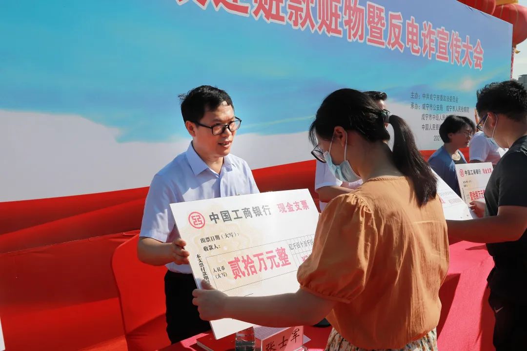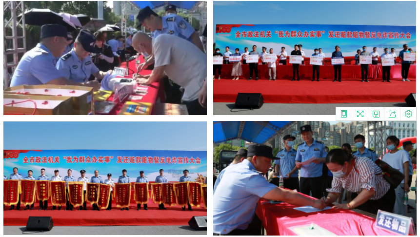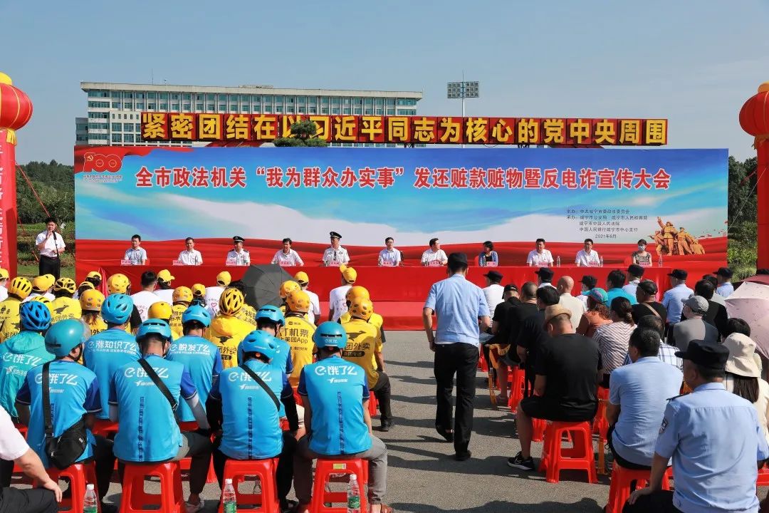 通過(guò)此次退贓大會(huì),進(jìn)一步向全市人民展示了咸寧公安扎實(shí)開展“我為群眾辦實(shí)事”活動(dòng)成效,以及嚴(yán)打嚴(yán)防各類犯罪,致力“打防管控宣”,堅(jiān)決斬?cái)嗌煜蛉罕婂X袋子的黑手。