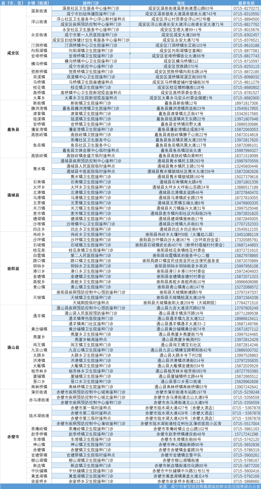 咸寧市新冠疫苗接種門診(點(diǎn))服務(wù)信息:
