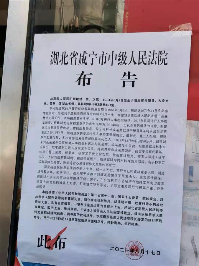 8月17日,一張由咸寧市中級人民法院發(fā)布的布告,張貼在通山縣城的大街小巷,當(dāng)?shù)乩习傩赵趪^熱議的同時(shí),一段兩年前發(fā)生在這里并鬧得沸沸揚(yáng)揚(yáng)的兇殺案,也被重新拉回到人們眼前。