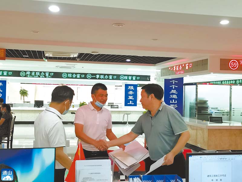 “1個地塊5個證,一共25個證,沒想到一天就能拿到手!”9月30日下午,在通山縣政務服務中心工程建設項目綜合審批窗口,通山縣興達鞋業(yè)有限公司經理程宏兵從縣住建局局長手中接過厚厚的一摞證,意味著通山縣興達鞋業(yè)有限公司在通山的地塊達到開工條件。