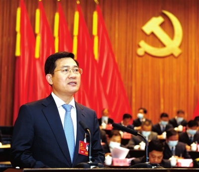 孟祥偉代表中共咸寧市第五屆委員會向大會作報告。 咸寧日報全媒體記者 袁燦 攝