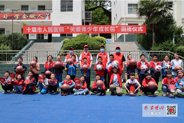 簡(jiǎn)單用過(guò)午餐,鐘森顧不得午休,又帶領(lǐng)駐村工作隊(duì)同志,到槐樹(shù)林特場(chǎng)小學(xué),為孩子們送去特別的“六一禮物”——十堰人醫(yī)干部工捐贈(zèng)的價(jià)值1.2萬(wàn)元的15份“關(guān)愛(ài)青少年成長(zhǎng)包”,每個(gè)“成長(zhǎng)包”內(nèi)有一個(gè)籃球、一個(gè)排球、一個(gè)足球、一副羽毛球拍和兩筒羽毛球、一副乒乓球拍和一袋乒乓球,這些包含人醫(yī)情的“成長(zhǎng)包”,將分配到全校六個(gè)年級(jí),由班級(jí)管理、全體學(xué)生共享。孩子們抱著嶄新的節(jié)日禮物,開(kāi)心得合不攏嘴,紛紛感謝十堰人醫(yī)叔叔阿姨們的愛(ài)心善舉。