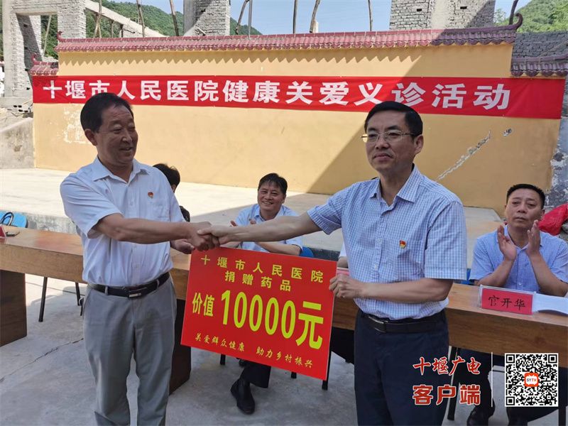 為提高當(dāng)?shù)亟】邓?,解決群眾實際困難,醫(yī)院總會計師譚向東代表十堰人醫(yī)現(xiàn)場捐贈了價值10000元的常用藥品。