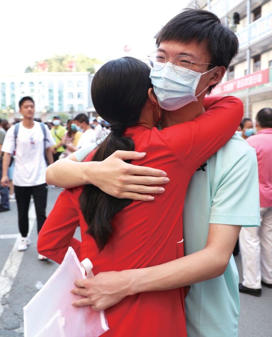 考場(chǎng)里,是對(duì)考生12年勤學(xué)苦讀的檢驗(yàn);考場(chǎng)外,是親人們的牽掛與期盼。臨進(jìn)考場(chǎng)前,走出考場(chǎng)后,一個(gè)緊緊的擁抱、一個(gè)自信的手勢(shì)、一個(gè)會(huì)心的微笑,舉手投足間都是滿滿的愛。文、圖/記者 張啟國(guó) 劉成臣