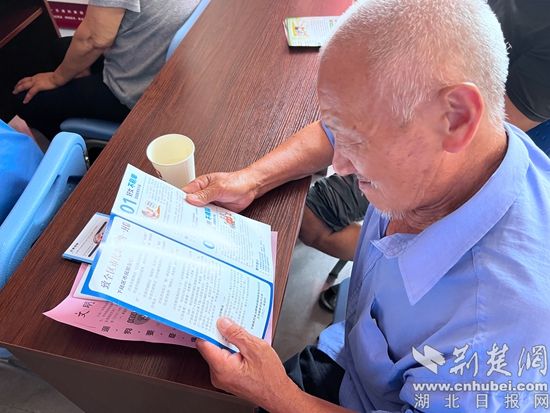老人認真看反詐宣傳手冊。通訊員 供圖