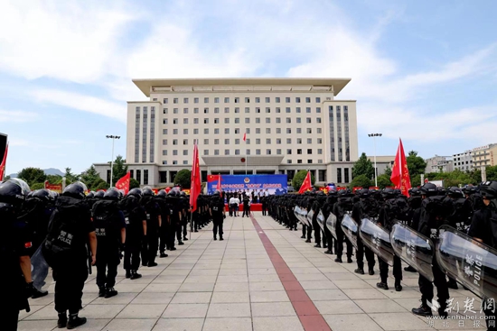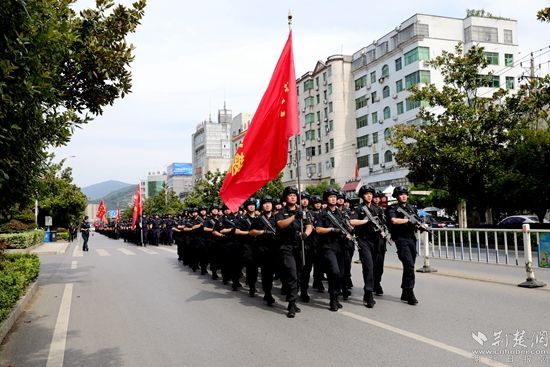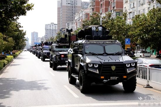 來自各縣(市、區(qū))公安局、市局特巡警支隊(duì)的500名特巡警、48輛裝甲車、運(yùn)兵車、指揮車組成的8個方隊(duì)準(zhǔn)時集結(jié),警容嚴(yán)整、裝備齊整、斗志昂揚(yáng),場面超燃震撼,堪比電影大片,充分展示了咸寧公安隊(duì)伍敢打必勝、頑強(qiáng)拼搏、紀(jì)律嚴(yán)明的精神風(fēng)貌和良好形象。
