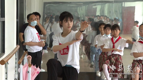 同時,武漢體育學(xué)院新聞傳播學(xué)院暑期社會實踐隊在浠水縣開展了“探尋體育初心·助力鄉(xiāng)村振興” 為主題的“三下鄉(xiāng)”社會實踐活動。在縣實驗小學(xué)內(nèi),曾榮獲全國青運會武術(shù)套路比賽冠軍的武體學(xué)子連志蘋帶領(lǐng)學(xué)生練習(xí)武術(shù),讓孩子們近距離感受體育的魅力和運動的快樂。